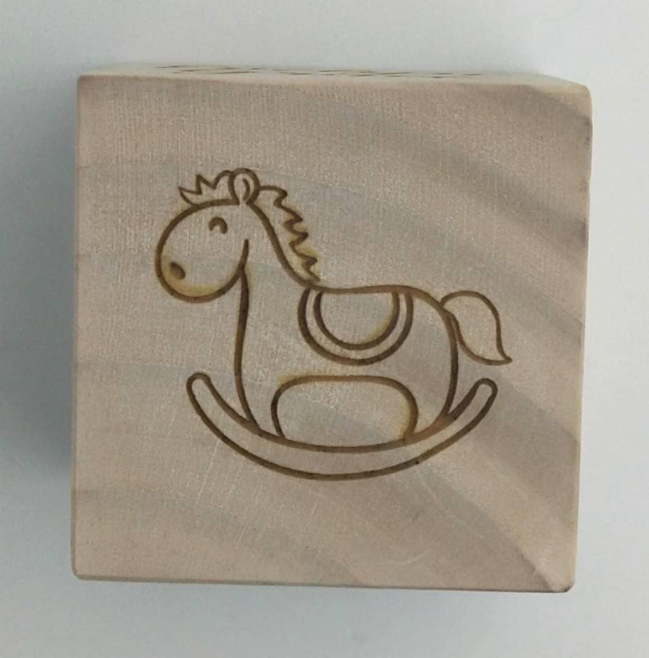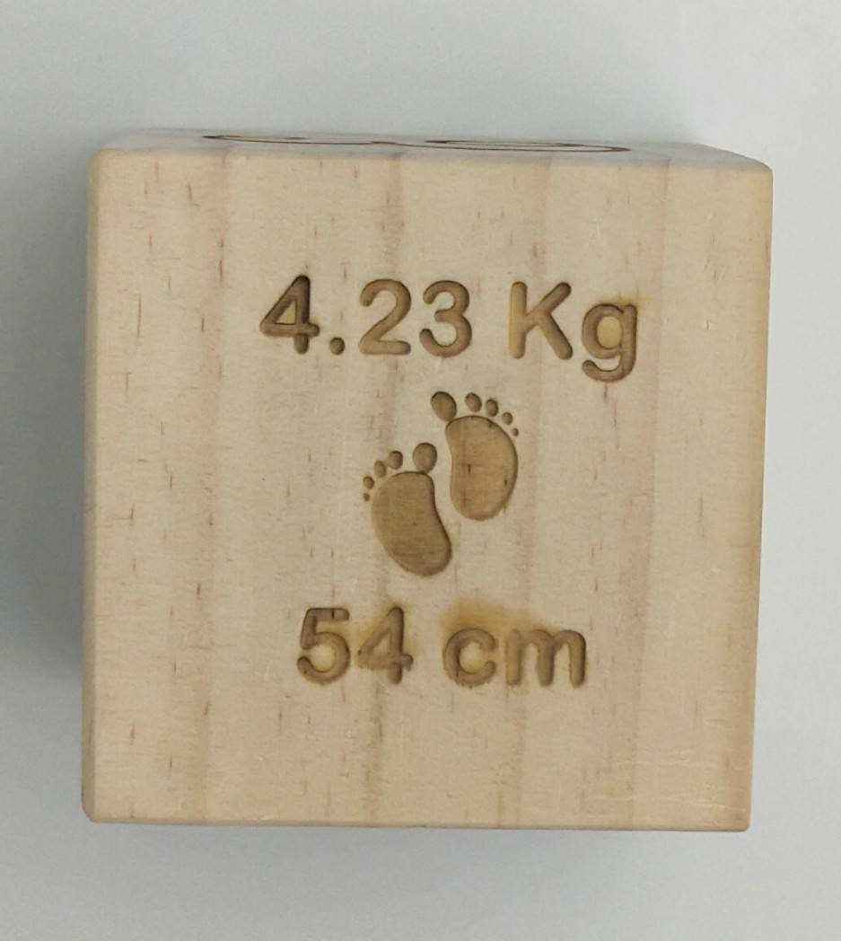 The block is 7cm x 7cm x 7cm and made of pine, is sanded smooth to remove sharp edges and is left with its natural finish.