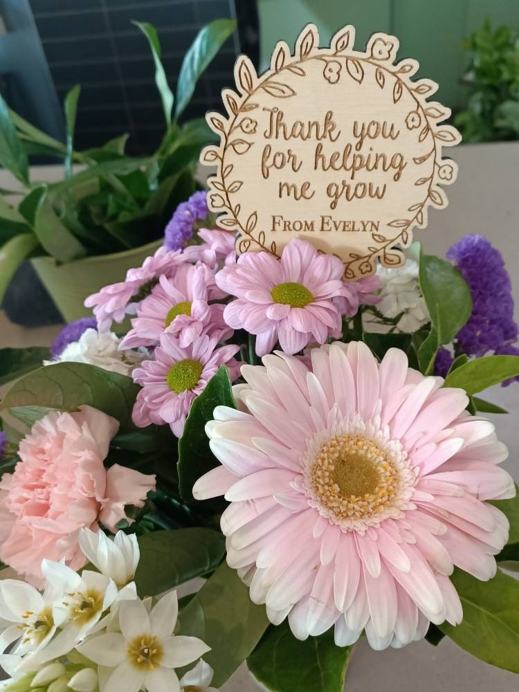 Personalised stick 'thank you for helping my grow'.