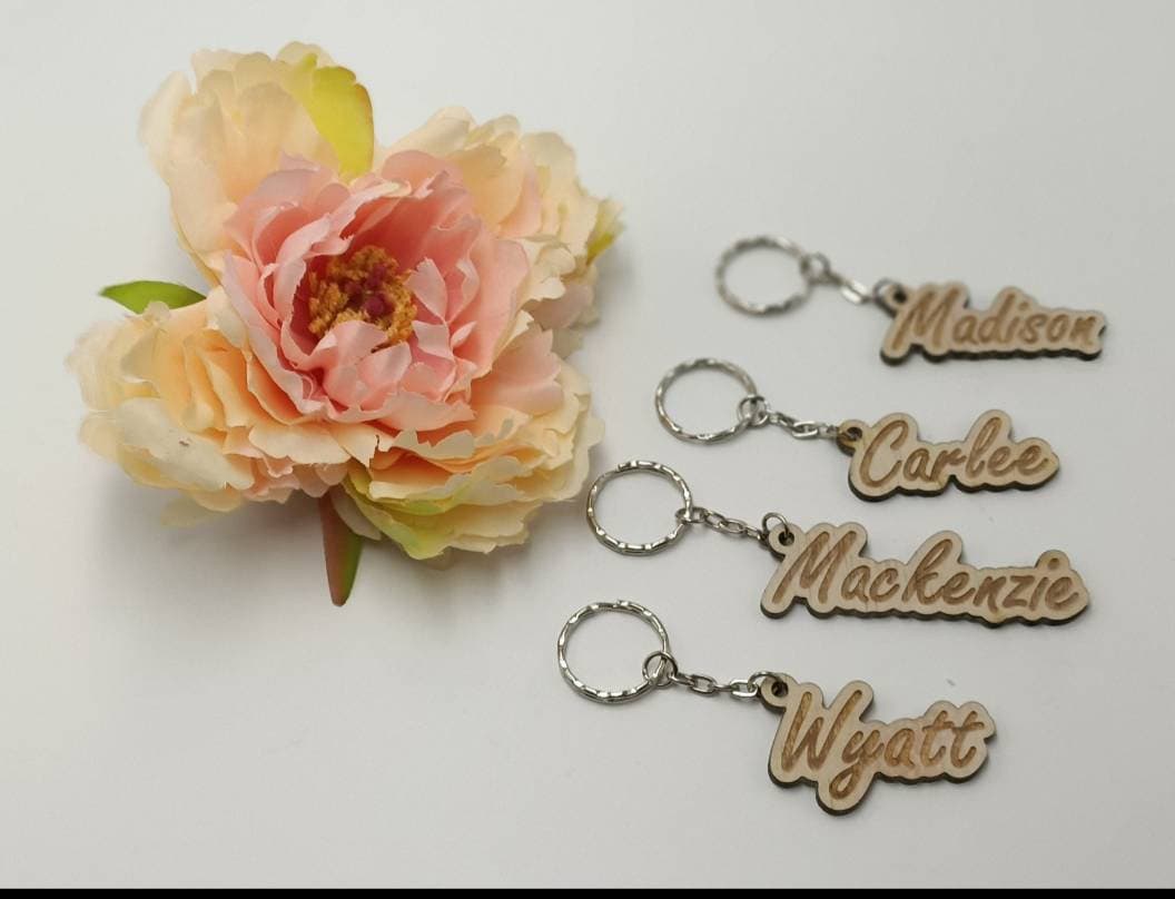 The key ring is made from 3mm Birch Plywood and metal key ring and are approximately 4cm -5cm